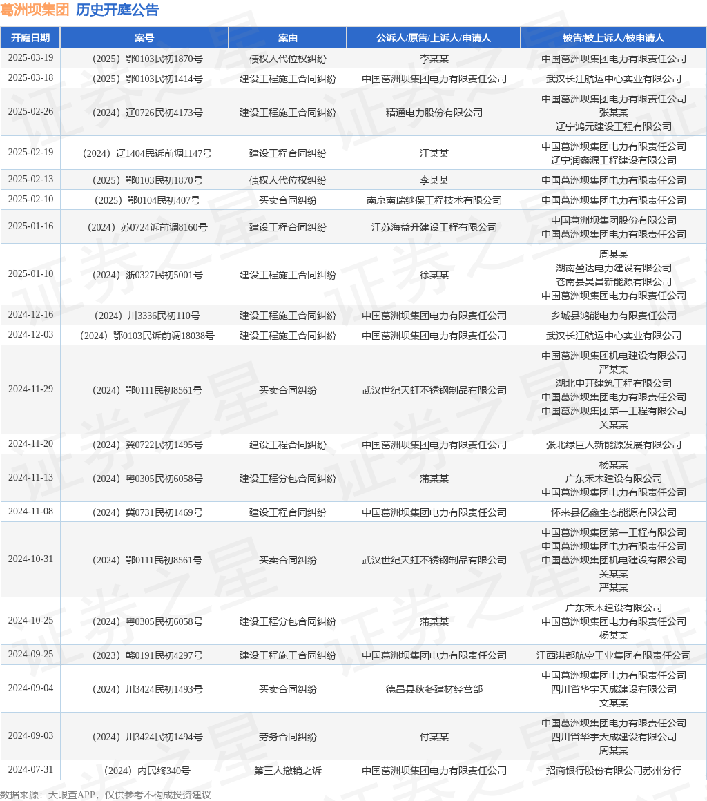 本站消息,根据天眼查APP显示,近日公布了一则中国葛洲坝集团电力有限责任公司作为被告/被上诉人的开庭公告,详细内容如下: